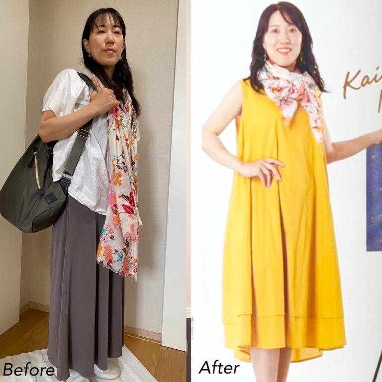 私は診断されたオータム色が好きでしたので、自分でも購入できていると思ってました。カラー診断と一緒にベストカラー診断も受けてみないと声かけられ、やってみると落ち着いたオータムカラーよりも彩度の高いウォータムカラーが似合うことがわかりました。tiaraさんで診断を受けていなかったら、ずっと落ち着いたオータム色を着て、いまいちパッとしない私だったかも知れません…また一緒にオンラインショップでお洋服を選びました。実際の現物は見ていないのに、的確なアドバイスをされるところがさすがだなと思いました。おかげでとっても似合うワンピースを購入することができました。